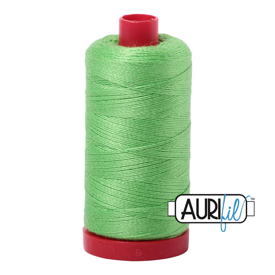 Aurifil’s 100% Cotton 12wt Thread is wound on a red spool. It is the heaviest weight thread that we offer and is perfect for hand applique, hand embroidery, hand quilting, cross stitch, embellishment, handmade lace, machine applique, blanket stitch, machine embroidery (especially for designs that use a longer stitch length), machine art quilting, Sashiko, redwork, lower looper serging, and longarm quilting.