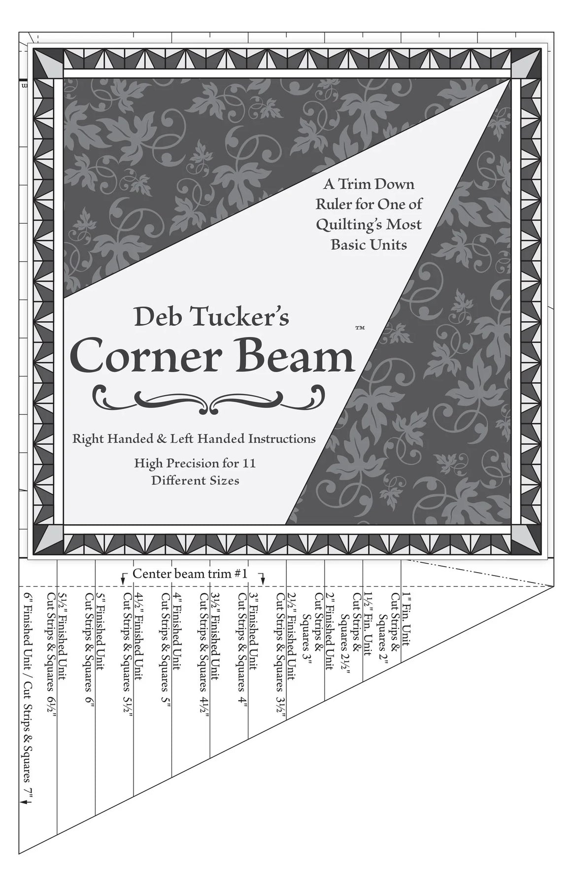 This tool creates a fundamental unit that is sure to add sparkle to your quilt block designs. Although the ruler shape is similar to the V Block, the final unit has two seamlines radiating from a single corner, so the center triangle in the finished unit resembles a beam of light shining out of that corner. Accurate construction has always been challenging until now. With the Corner Beam tool, all the shapes are cut slightly over sized and once sewn, trimmed to extremely precise units with seams perfectly placed for a crisp sharp point every time. Brighten up your blocks by adding Corner Beam to your toolbox today!
