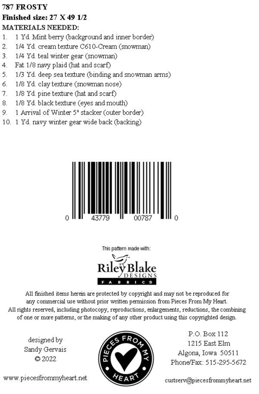 Meet your cheerful snowman friend! This whimsical pattern features a jolly character with snowflake-adorned body sections. The best part? The pieced border comes together effortlessly using a 5" Stacker from Sandy Gervais's Arrival of Winter collection for Riley Blake Designs—no cutting required, just pure quilting fun!