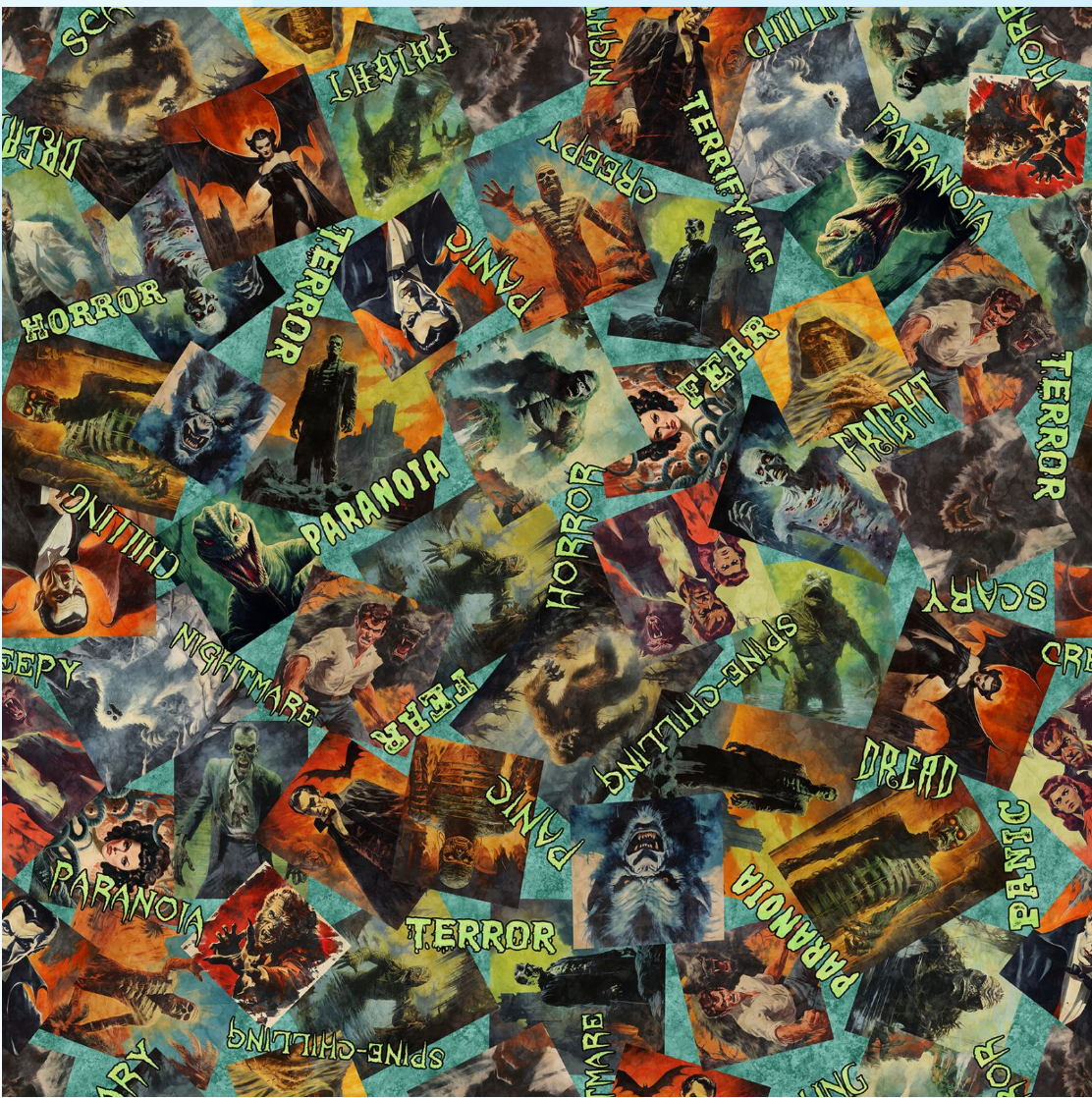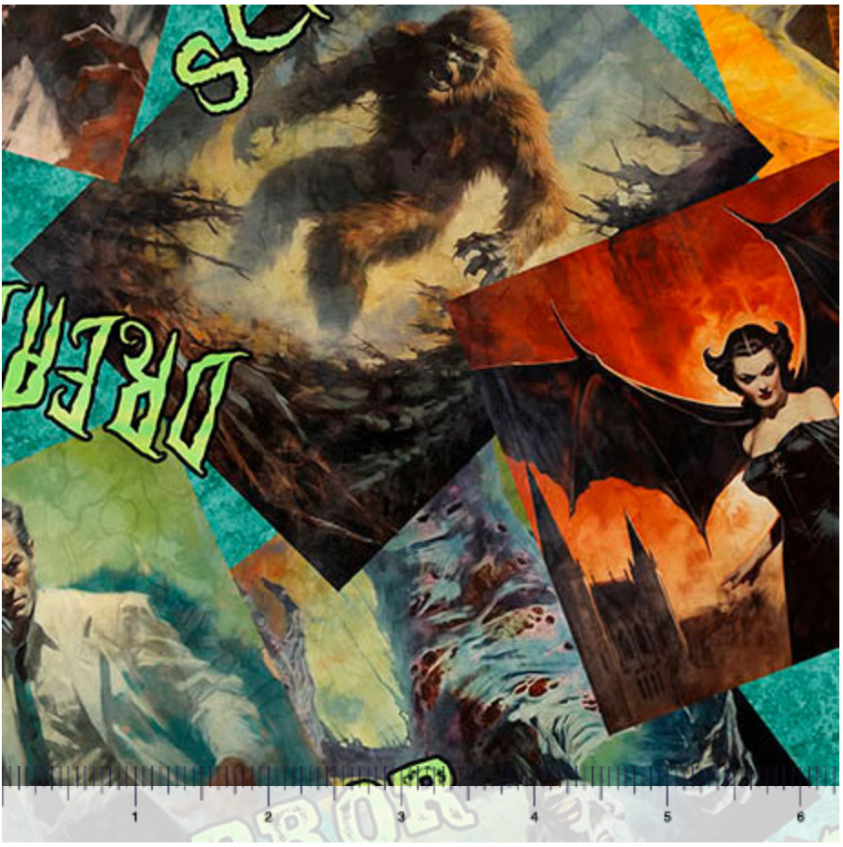 The Gotta Have It collection, from Morris Creative Group for QT Fabrics, is pure fun with novelty holiday prints. For Halloween, choose from burning skulls, a horror movie collage, and monsters. Project possibilities are endless, and you guessed it – you gotta have it!