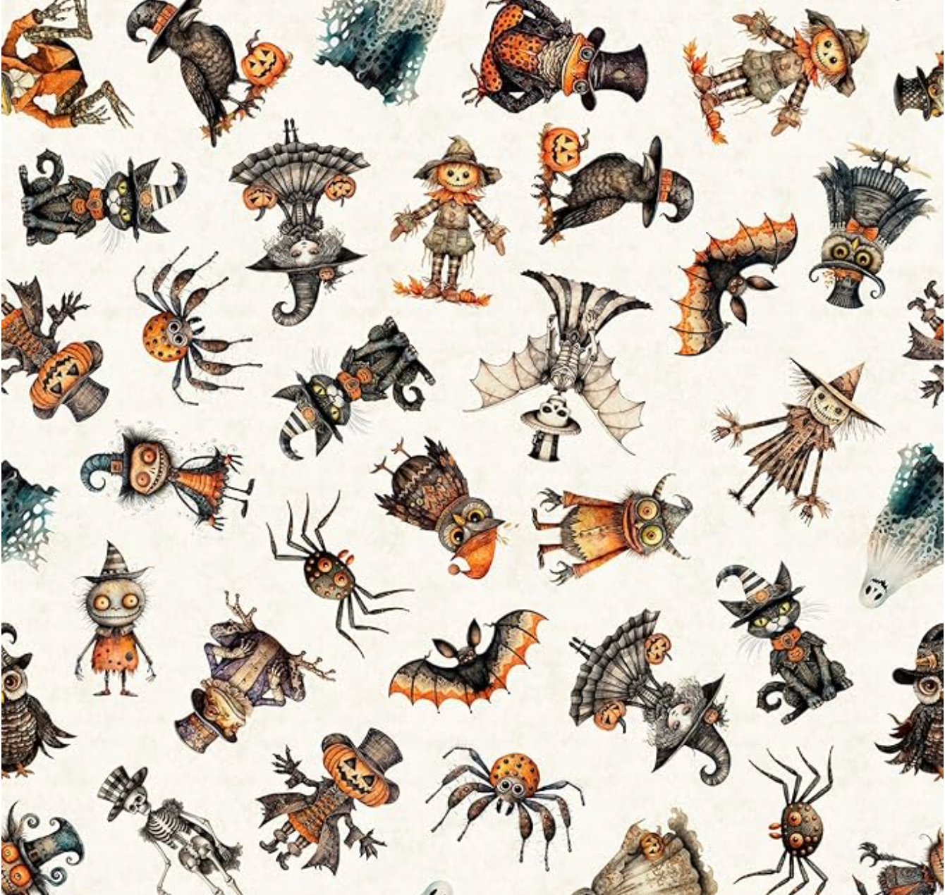 Eerie and creepy, but all around fun, is the Jeepers Creepers collection from Morris Creative Group for QT Fabrics! A 36” pumpkin panel leads the parade with ghosts, witches, spiders, and more Halloween characters in a generous array of design layouts. Create festive holiday projects for all to enjoy!