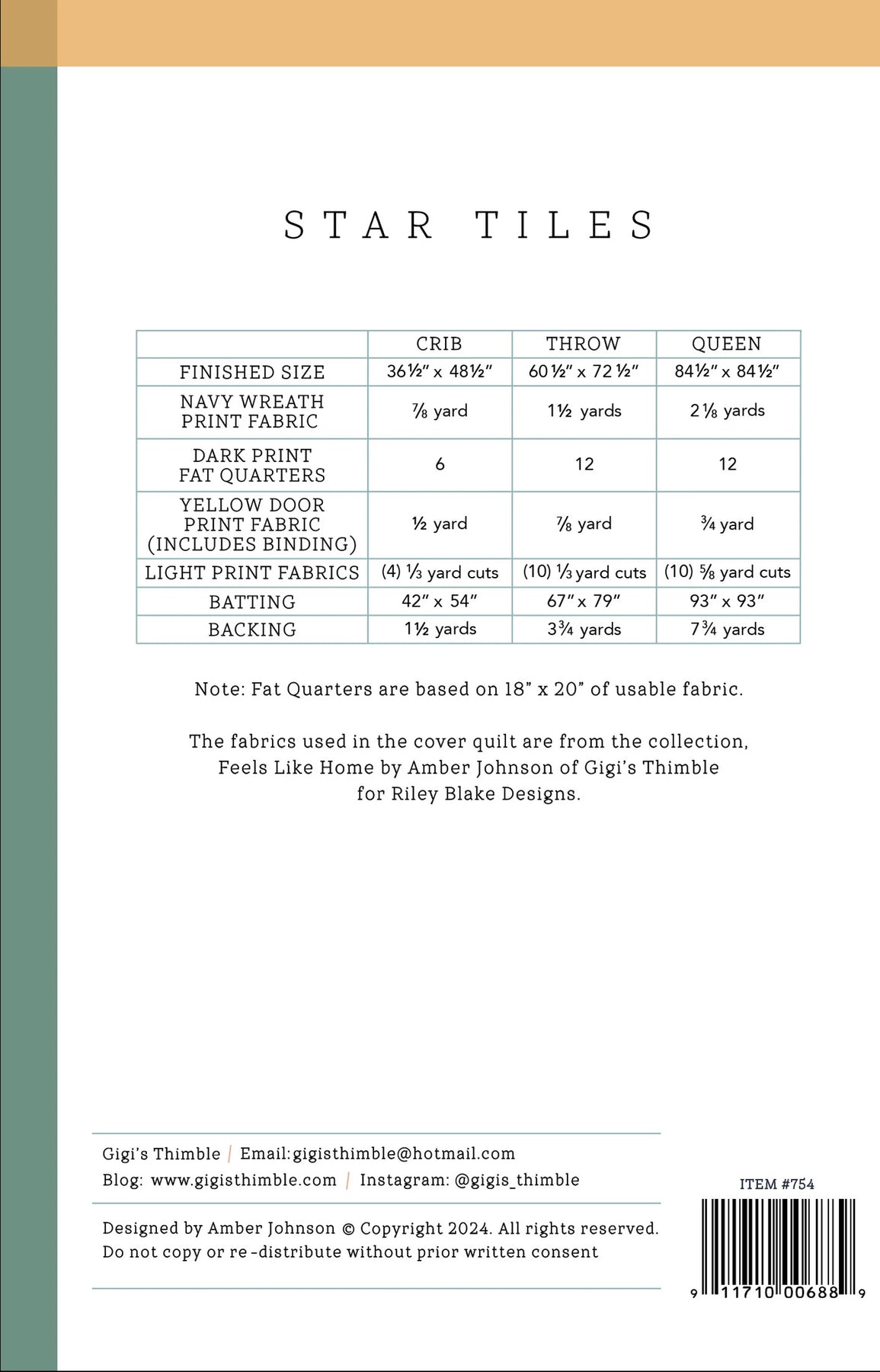 Star Tiles comes with instructions for 3 different quilt sizes: