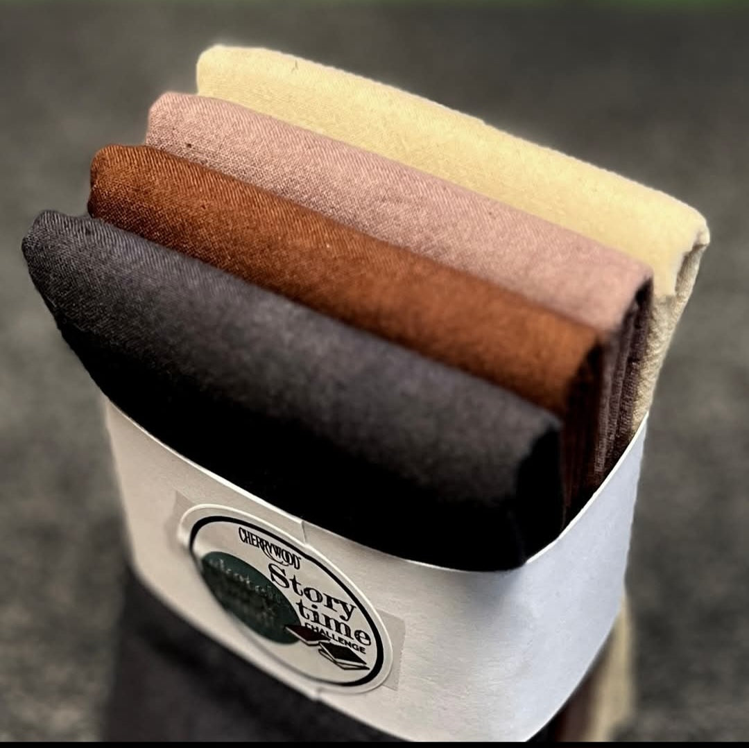 This bundle contains 4 hand dyed fat quarters. The bundle of four neutral colors maybe be added but not necessary.